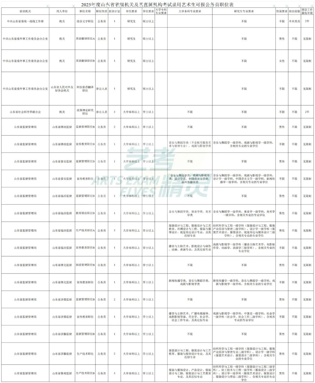 2025年度山东省考试录用公务员报名即将开始。全省各级机关计划考试岗位录用公务员9692名,共394个岗位,相较于24年计划数减少877名,岗位增加90个。艺术生可报42个岗位(含三不限),共录用61名,其中三不限共15个岗位,共录用23名。