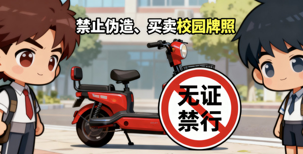 1. 严禁骑行无证电动自行车,杜绝伪造、买卖校园牌照的违法行为。