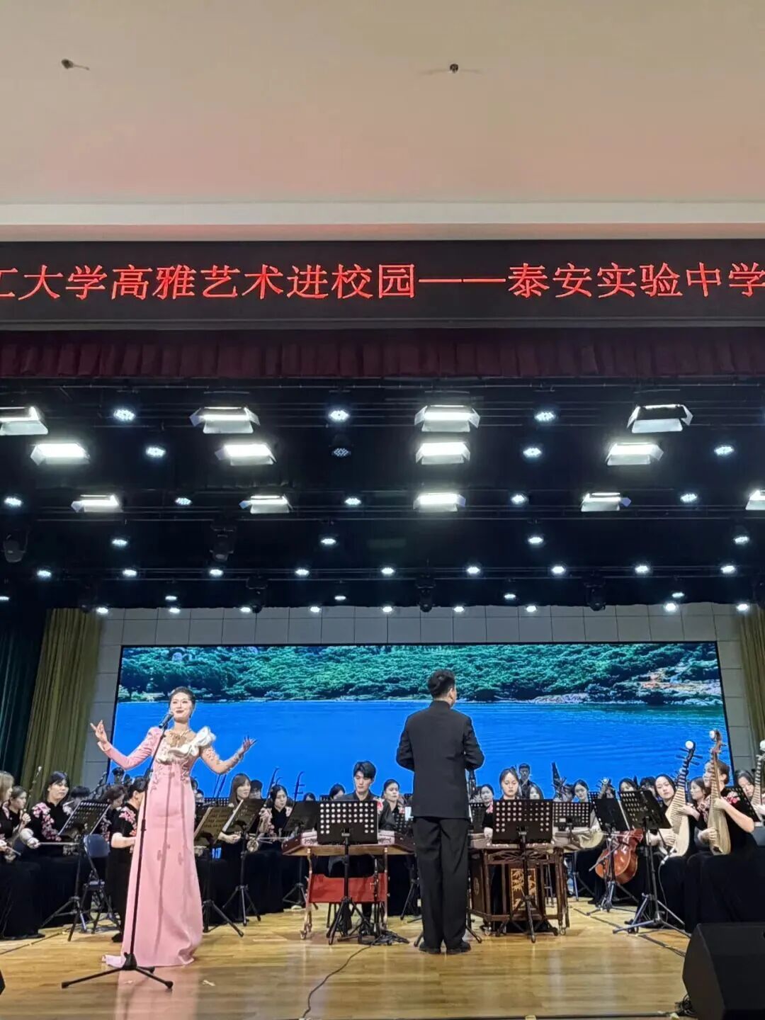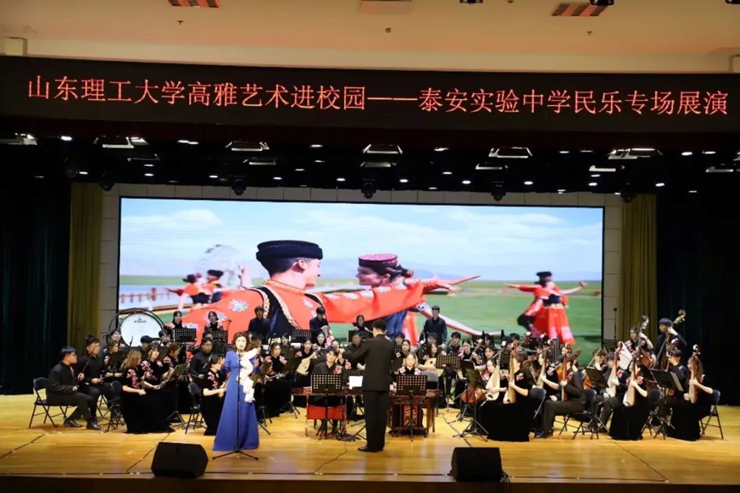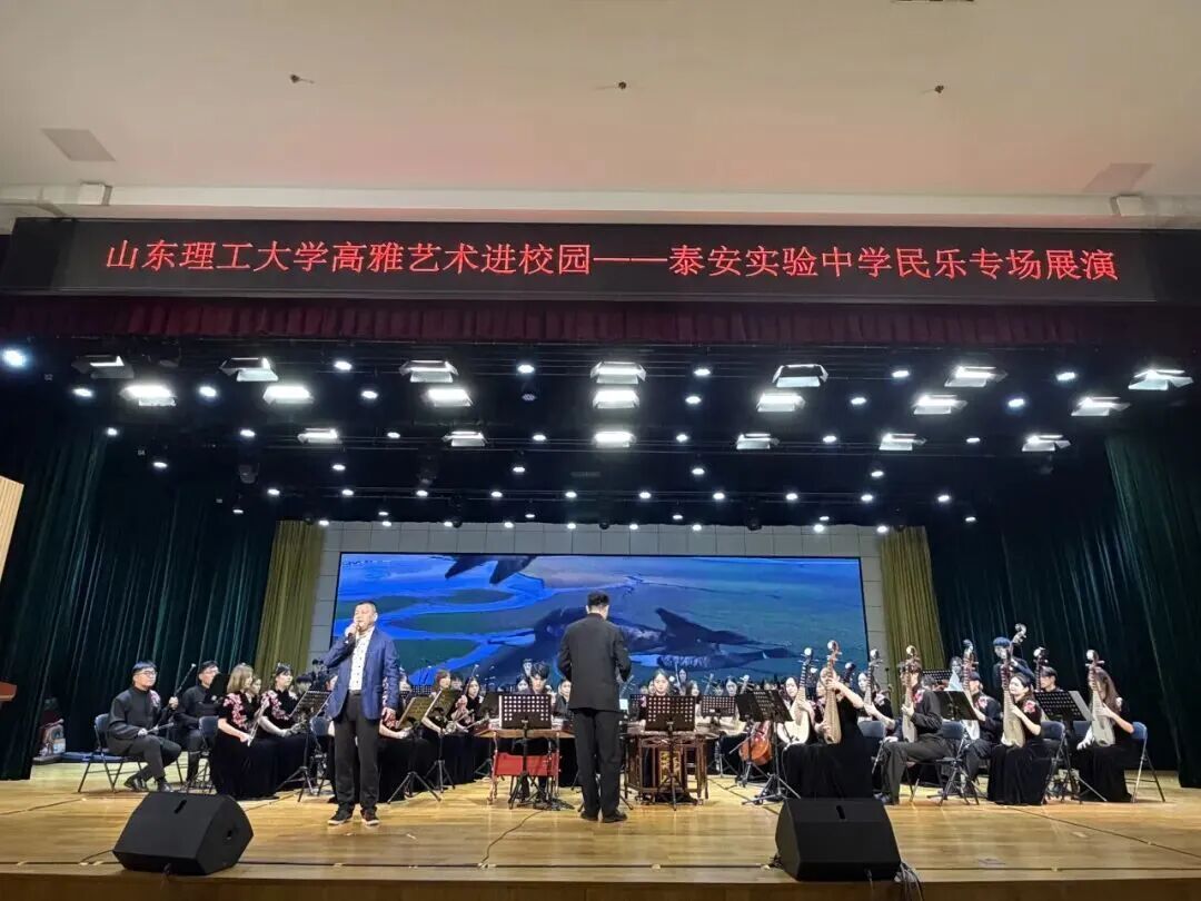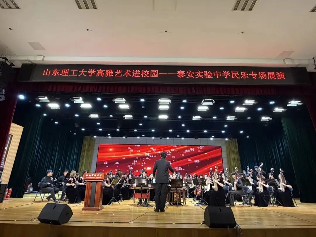 11月20日至21日,我校“高雅艺术进校园”民族乐团专场演出先后走进滨州市博兴第一中学和泰安市泰安实验中学,以“美育浸润﹒艺术育人”为主旨,千余名师生送去融传统韵味、艺术表达与美育实践于一体的民族音乐盛宴。党委常委、副校长陈盛伟出席并致辞,音乐学院、建筑工程与空间信息学院相关负责人参加。