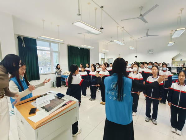 从气息练习到声部磨合,从节奏校准到情感表达,实践团的成员们带着满满的耐心和热情,和同学们一起打磨每一个音符,让零散的童声凝聚成和谐的合唱。当清澈的歌声在教室里响起,我们知道,这不仅是一次音乐的实践,更是一场青春与童心的双向奔赴。