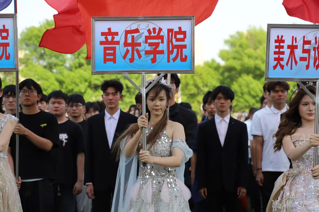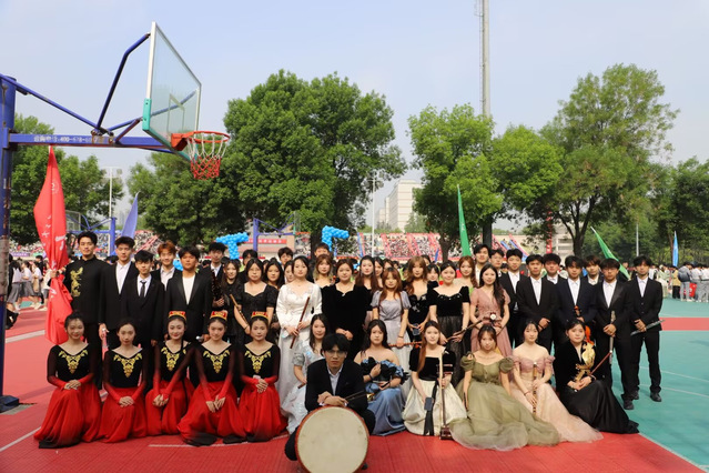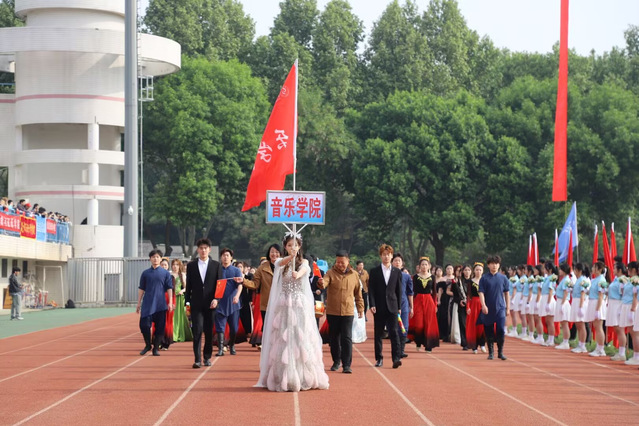 春风和煦,草木葱茏。山东理工大学春季田径运动会隆重开幕,音乐学院全体师生精神抖擞、意气风发,在全校师生面前奏响了一曲力与美、艺与体交织的青春乐章。开幕式方阵入场环节,举牌同学身着华丽礼服,身姿挺拔、引领着学院方阵阔步前行。紧随其后的乐器方阵兼具文艺底蕴与蓬勃朝气,鲜红的院旗迎风舒展,充分展现了音乐学院学子自信从容、向阳生长的精神风貌,老师们手持鲜红小旗,步履铿锵、目光坚定,迈着整齐划一的步伐走过主席台。