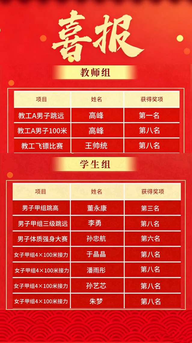 现将本次运动会获奖情况公布如下。